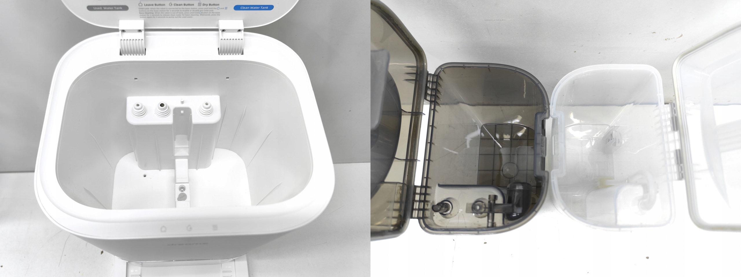 Z Dreame L10s Ultra nie tylko odkurzysz podłogi, ale też je umyjesz. Robot posiada 2 nakładki mopujące, które obracają się z prędkością sięgającą 180 rpm, dzięki temu pozbędzie się nawet wyjątkowo silnych plam. Został wyposażony w 2 zbiorniki na wodę – czystą oraz brudną. Nie musisz jednak przejmować się jego napełnianiem. Gdy wykryje, że kończy się woda i środki czyszczące, samodzielnie je uzupełni. Uwaga: należy stosować tylko środek czyszczący Dreame