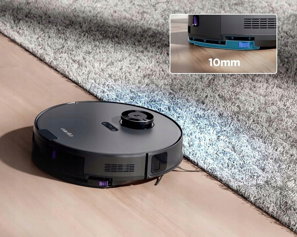 Mapowanie w czasie rzeczywistym w aplikacji Eureka umożliwia dostosowanie sprzątania poprzez ustawienie planów pięter, stref zakazanych i harmonogramów. Wykrywanie rodzaju podłogi zwiększa siłę ssania dywanów i automatycznie podnosi mop do góry, aby zapewnić optymalne sprzątanie. Dzięki czasowi działania do 180 minut oraz technologii automatycznego ładowania i wznawiania pracy robot E10S jest gotowy do zapewnienia czystości w całym domu.