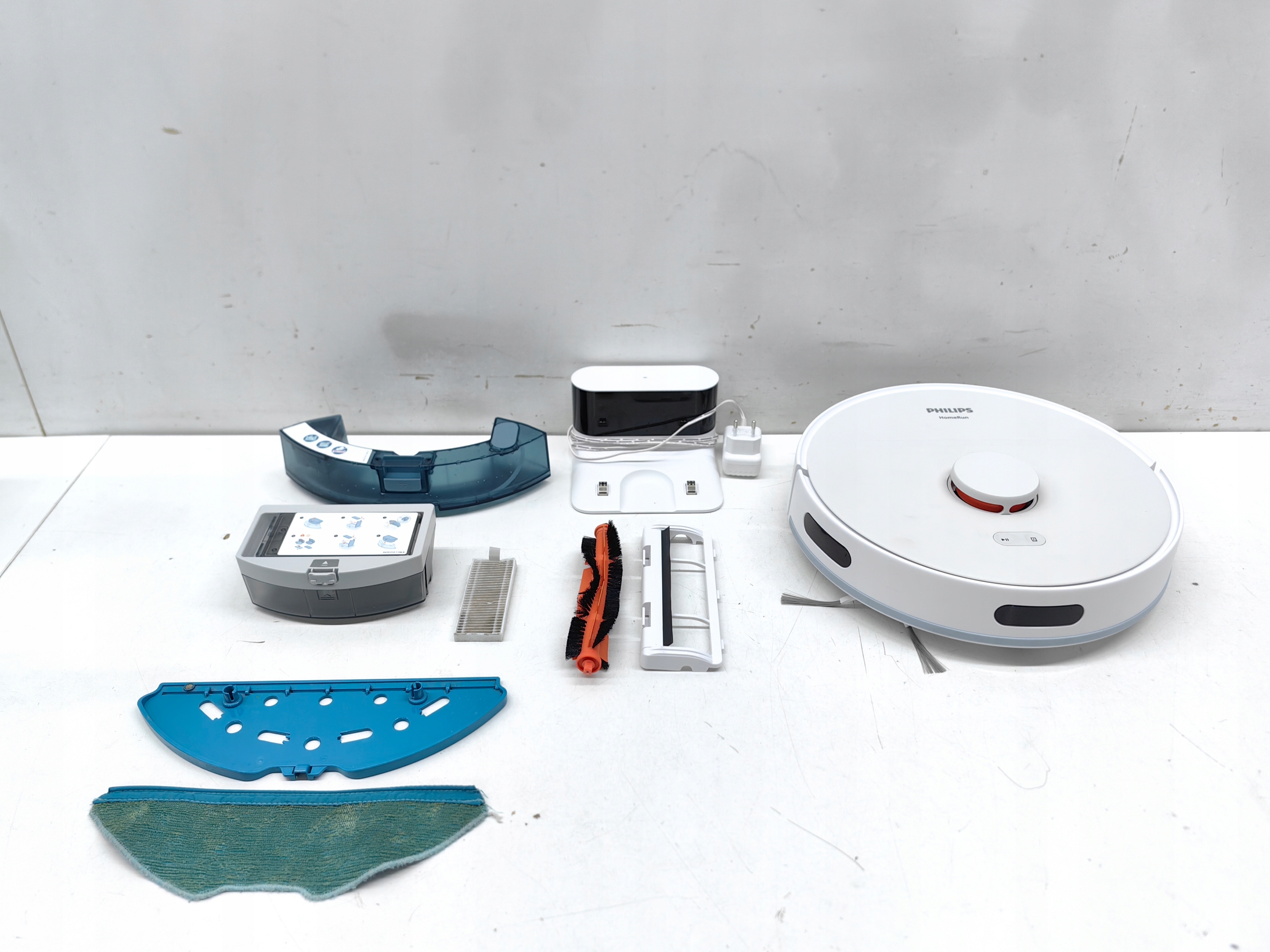 STAN TOWARU: UŻYWANY, DOKŁADNIE SPRAWDZONY PRZEZ AUTORYZOWANY SERWIS, 100% SPRAWNY, STAN TECHNICZNY I WIZUALNY BARDZO DOBRY, POSIADA ŚLADY UŻYTKOWANIA W POSTACI ZABRUDZEŃ, RYSEK I PRZETARĆ, PONADTO BRAKUJE KÓŁKA W NAKŁADCE DO MOPOWANIA (NIE WPŁYWA TO NA UŻYTKOWANIE), W ZESTAWIE ROBOT, STACJA Z ZASILACZEM, 1X SZCZOTKA GŁÓWNA, 1X SZCZOTKA BOCZNA, 1X POJEMNIK NA KURZ, 1X NAKŁADKA DO MOPOWANIA, 1X ŚCIERECZKA DO MOPOWANIA, 1X POJEMNIK DO MOPOWANIA, 1X FILTR, ROBOT PRZEKAZUJE KOMUNIKATY W JĘZYKU POLSKIM, DOKŁADNY STAN TOWARU I JEGO WYPOSAŻENIE UKAZANE NA REALNYCH ZDJĘCIACH NASZEJ AUKCJI, BRAK INSTRUKCJI OBSŁUGI, OPAKOWANIE ORYGINALNE ZE ŚLADAMI MAGAZYNOWANIA.