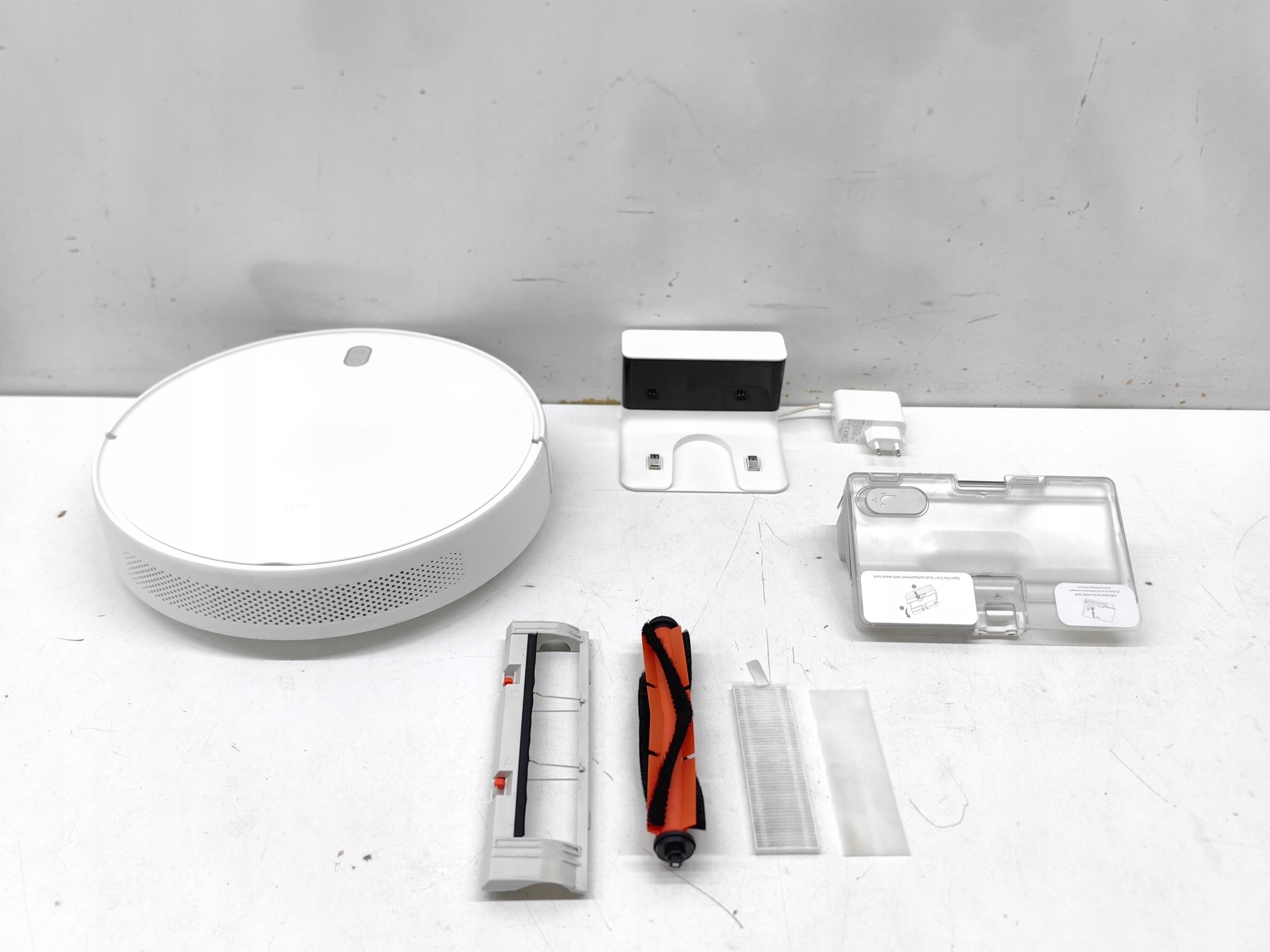 STAN TOWARU: UŻYWANY, DOKŁADNIE SPRAWDZONY PRZEZ AUTORYZOWANY SERWIS, 100% SPRAWNY, STAN TECHNICZNY I WIZUALNY BARDZO DOBRY, POSIADA ŚLADY UŻYTKOWANIA W POSTACI ZABRUDZEŃ, RYSEK I PRZETARĆ, MOPOWANIE NIE ZOSTAŁO SPRAWDZONE Z POWODU BRAKU NAKŁADKI MOPUJĄCEJ, W ZESTAWIE ROBOT, STACJA Z ZASILACZEM, 1X SZCZOTKA GŁÓWNA, 2X SZCZOTKA BOCZNA, 1X POJEMNIK NA KURZ I DO MOPOWANIA, 1X FILTR, ROBOT PRZEKAZUJE KOMUNIKATY W JĘZYKU POLSKIM, DOKŁADNY STAN TOWARU I JEGO WYPOSAŻENIE UKAZANE NA REALNYCH ZDJĘCIACH NASZEJ AUKCJI, BRAK INSTRUKCJI OBSŁUGI, OPAKOWANIE ORYGINALNE ZE ŚLADAMI MAGAZYNOWANIA.