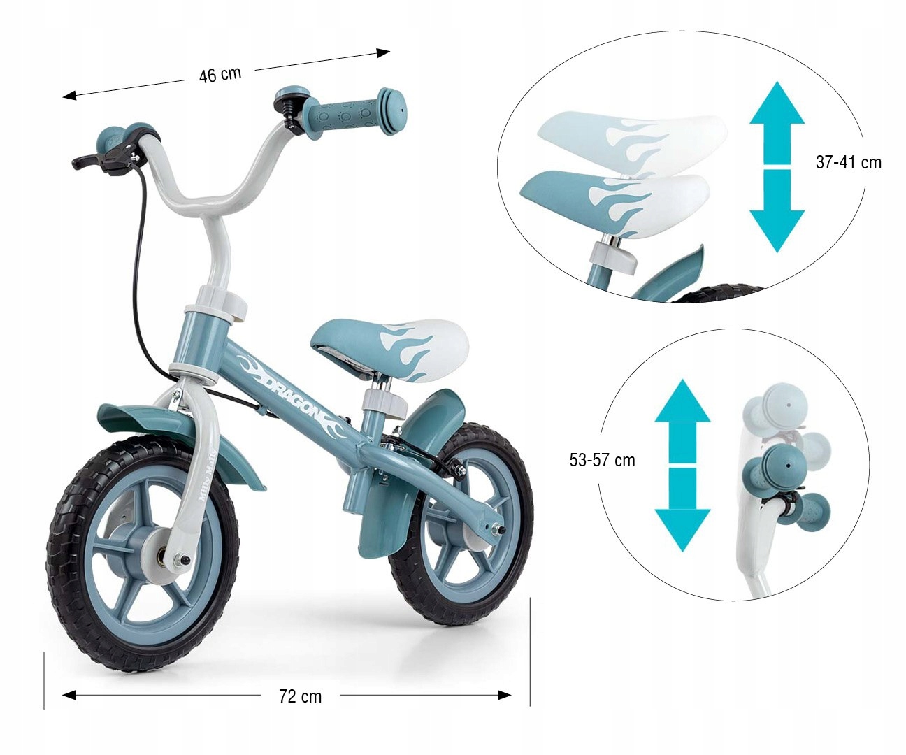Rowerek biegowy z hamulcem MILLY MALLY Dragon Turkusowy