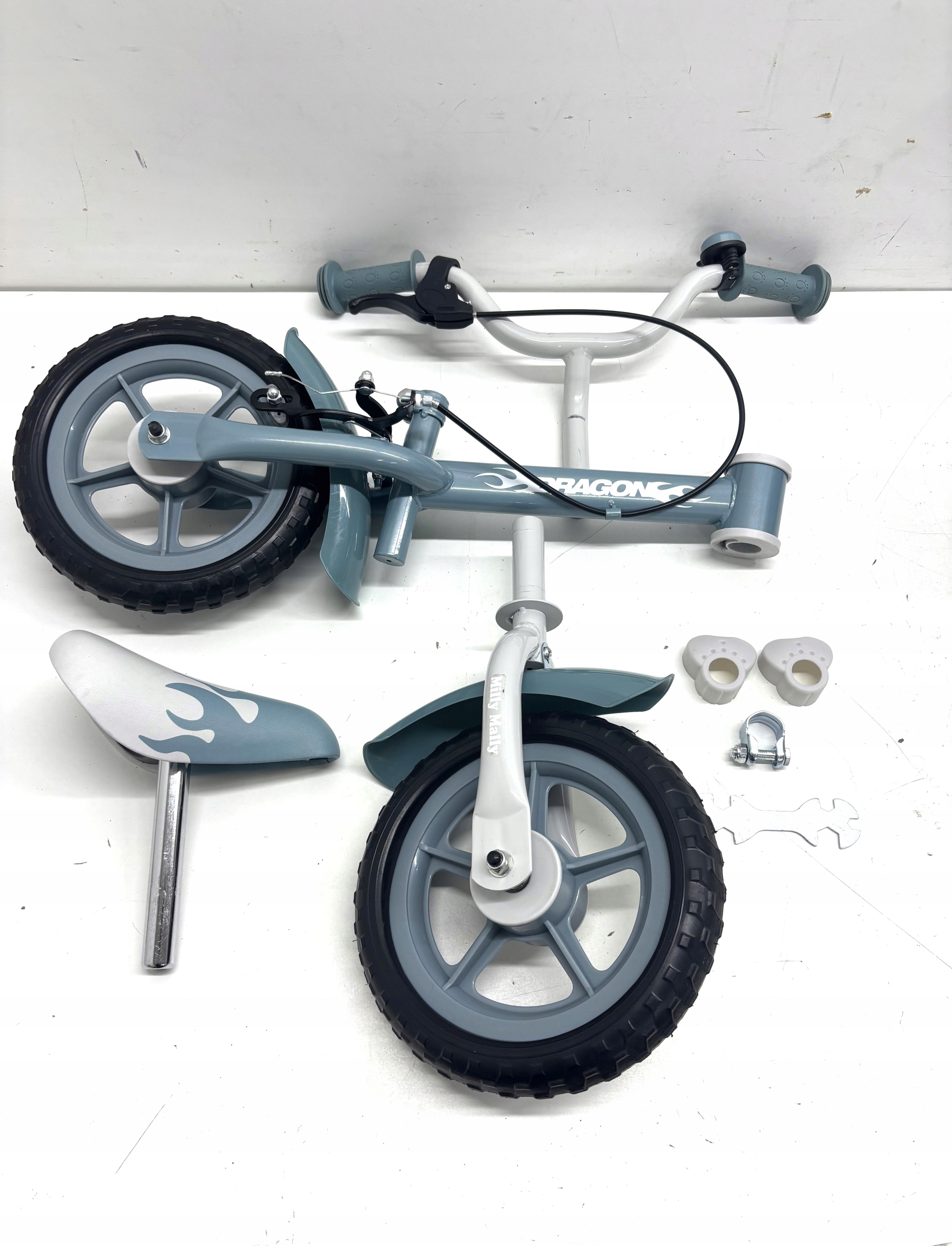 Rowerek biegowy MILLY MALLY Dragon został stworzony w oparciu o wytrzymałą ramę wykonaną z wysokiej jakości stali, której powierzchnia została pokryta błyszczącym lakierem w kolorze turkusowym, aby zminimalizować ryzyko zarysowania. Dodatkowym autem rowerku jest jego lekkość, bo rowerek waży zaledwie 2,8 kg, więc dziecko bez problemu uniesie go, np. nad krawężnikiem.