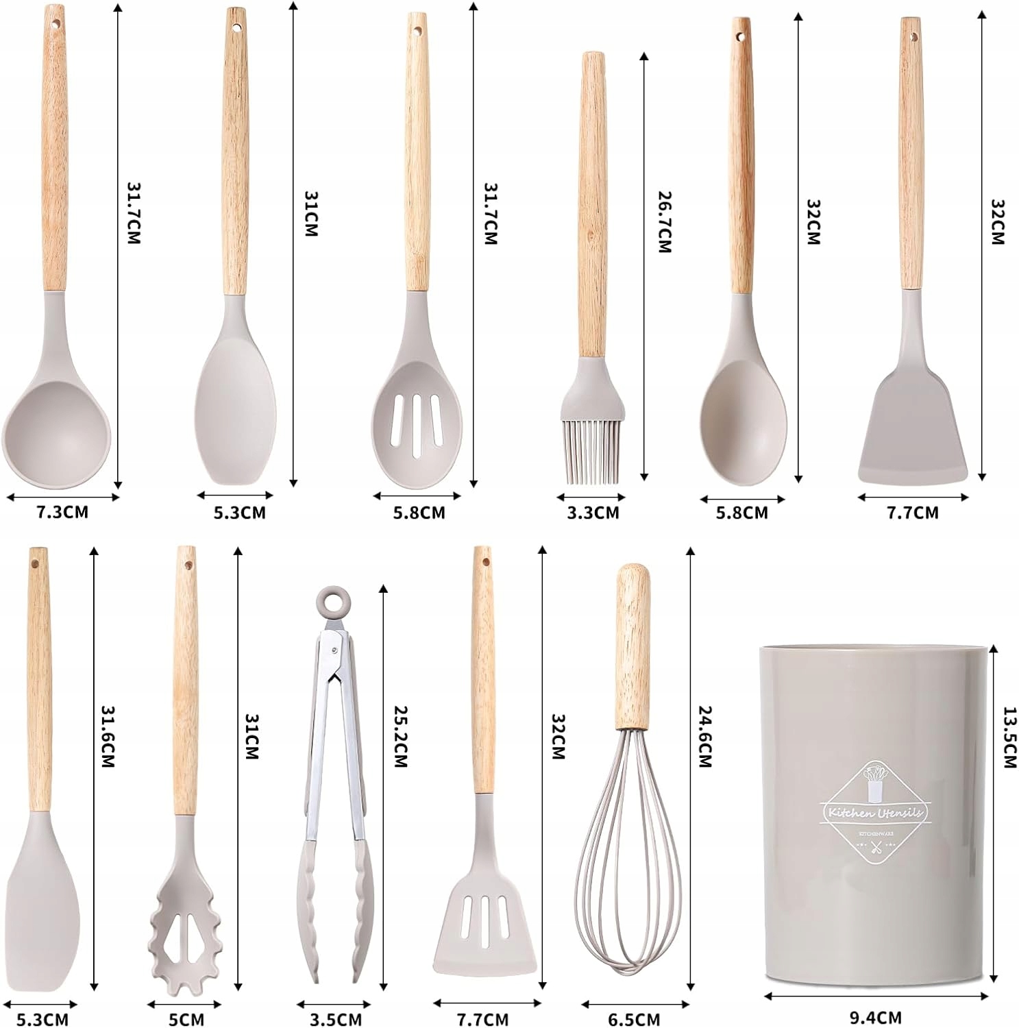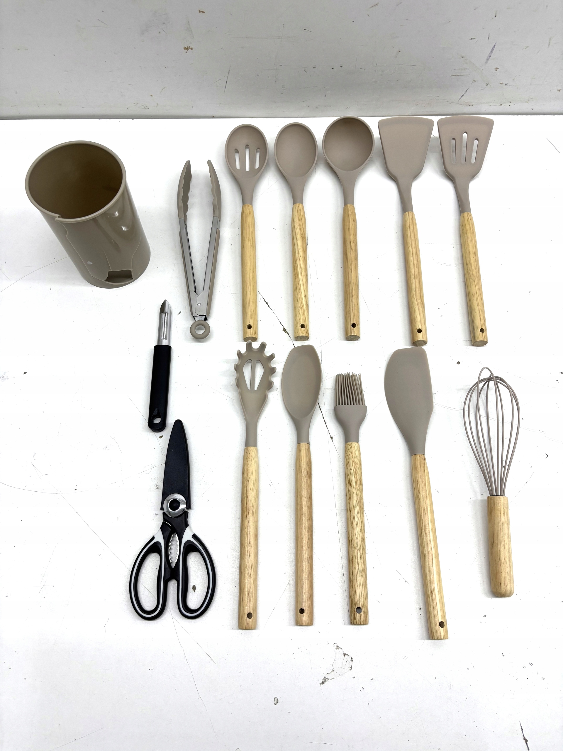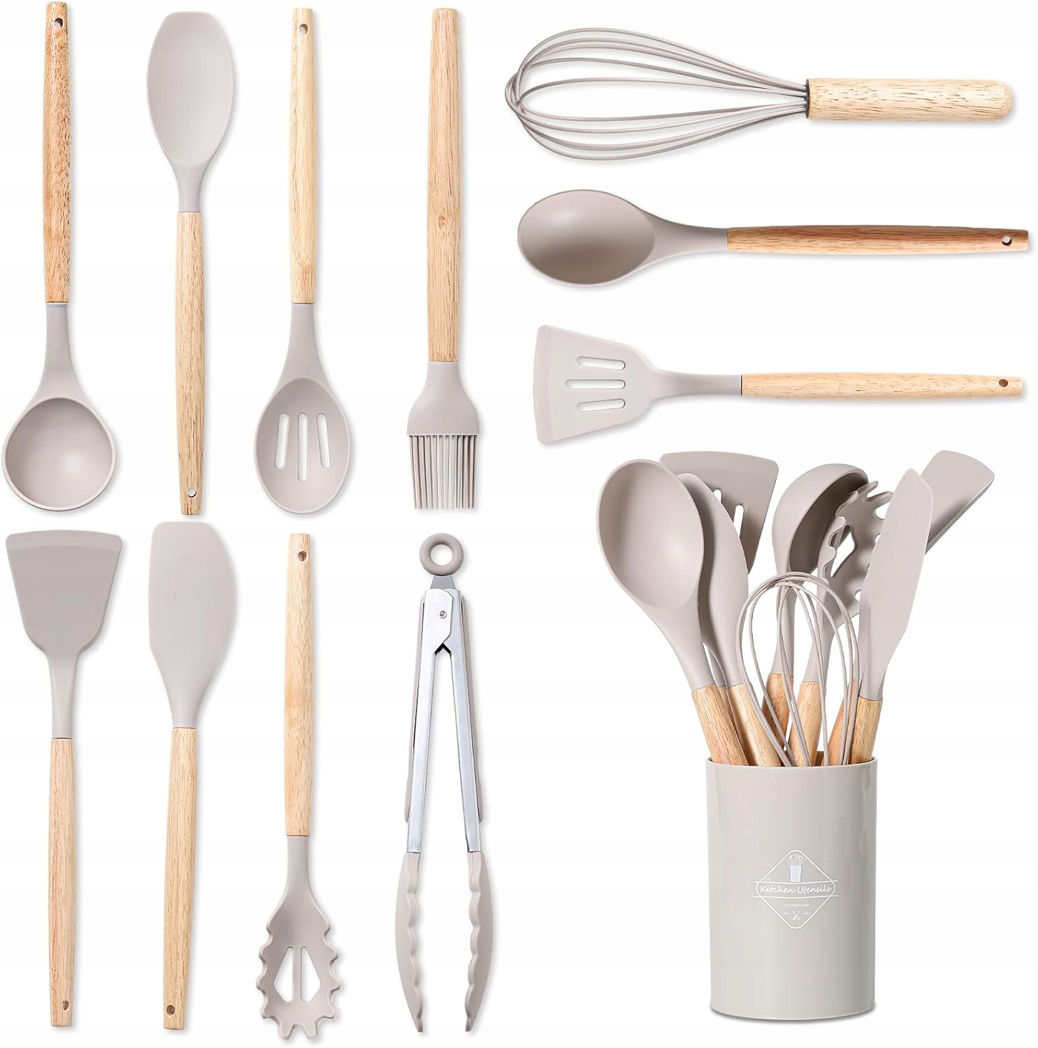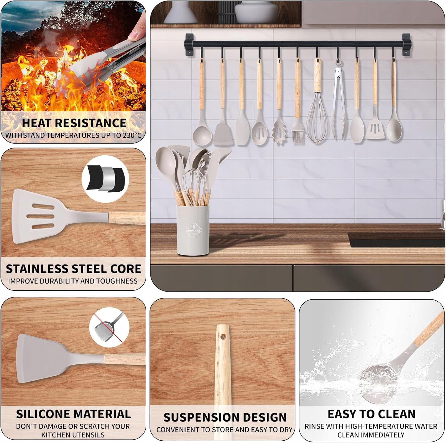 Silikonowe przybory kuchenne z drewnianymi rączkami BASVII