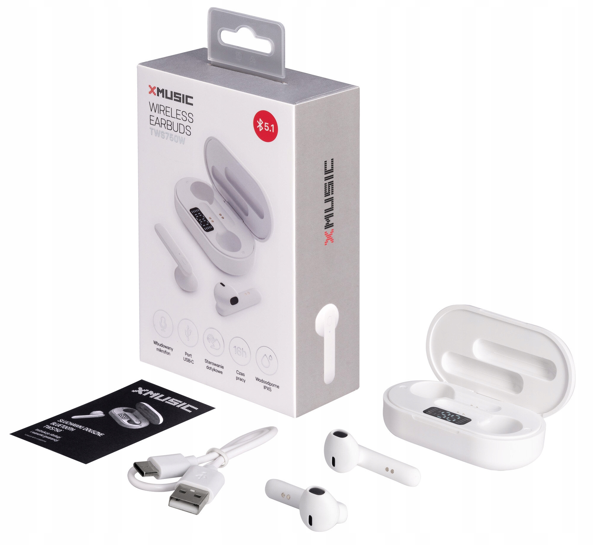 Słuchawki XMUSIC TWS750 z funkcją Bluetooth i sterowaniem dotykowym, umożliwia komfortowe użytkowanie urządzenia niezależnie od miejsca w którym się znajdujemy. Etui ładujące dołączone do zestawu pozwala na sprawne ładowanie urządzenia, dzięki umieszczeniu słuchawek w środku etui będą się one ładować, co wydłuży czas pracy urządzenia i umożliwi dalsze odtwarzanie. Słuchawki idealnie sprawdzą się podczas uprawiania różnego rodzaju aktywności fizycznej.