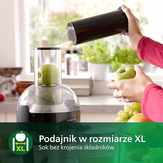 Wyciśnij do 2 litrów soku w jednym cyklu bez konieczności opróżniania pojemnika na miąższ.