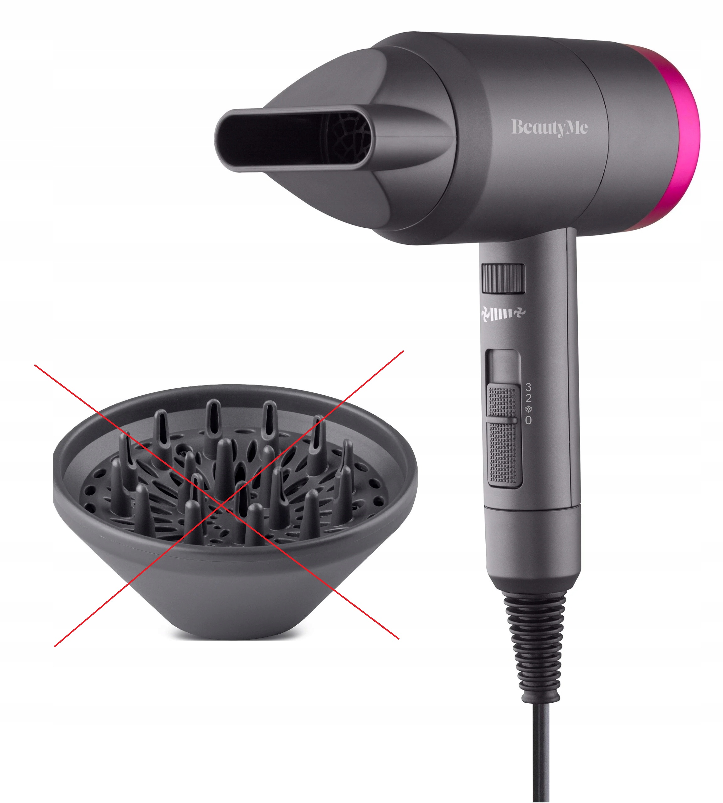 Wśród dołączonych do suszarki akcesoriów BeautyMe HD601 znalazł się koncentrator, który zapewnia szybkie suszenie i wspomaga prostowanie włosów. Dzięki niemu skierujesz strumień powietrza dokładnie tam, gdzie go potrzebujesz. Z jego pomocą każde suszenie przebiega bardzo sprawnie, a włosy są idealnie wystylizowane.