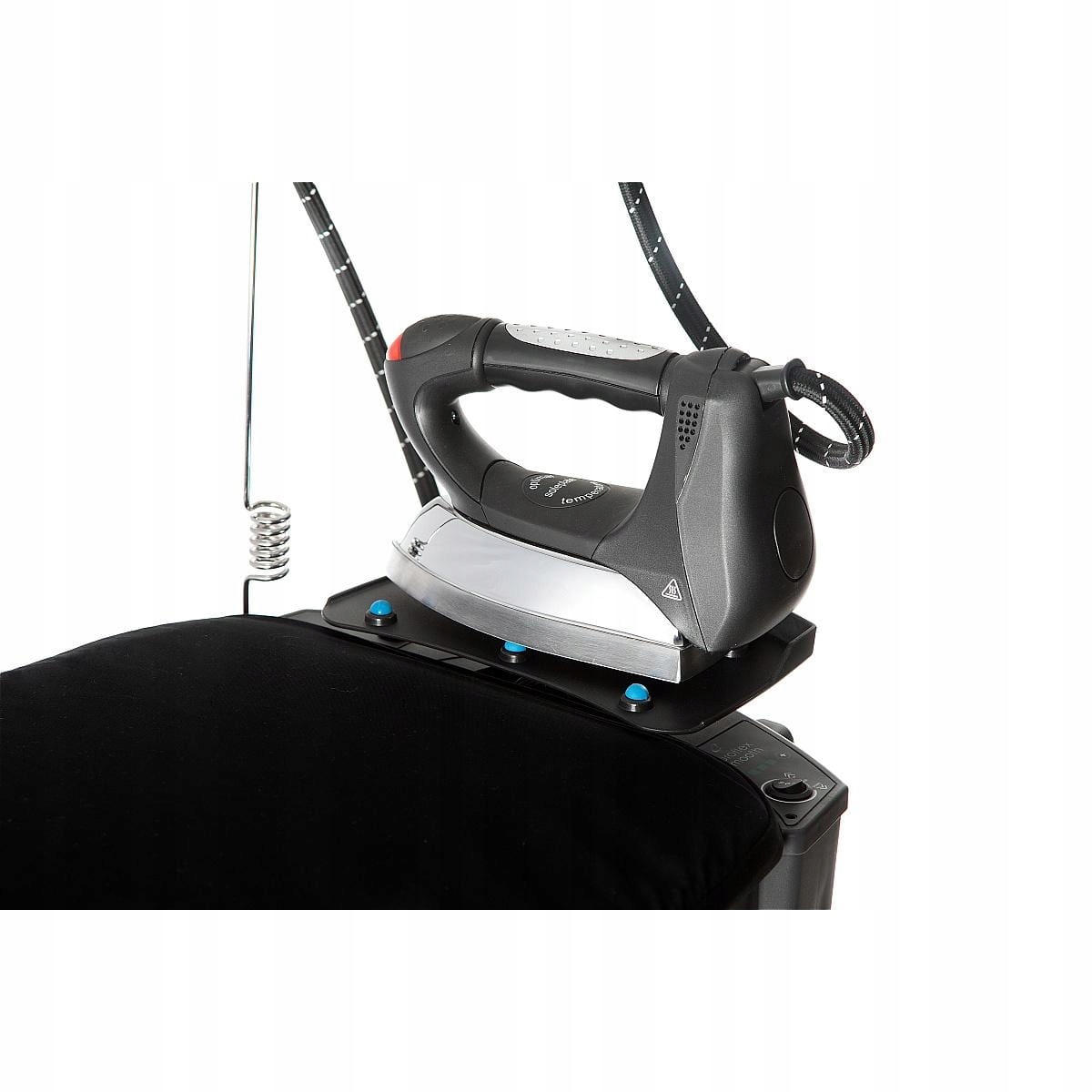 Żelazko jest integralną częścią aktywnej deski Euroflex Smooth B2X. Wykonane z wysokiej jakości materiałów ma ergonomiczną rączkę oraz aluminiową stopę żelazka z otworami emitującymi parę. Standardowe żelazko wytwarza parę o temperaturze około 100-102 stopnie Celsjusza, a profesjonalne żelazko Smooth B2X, dzięki podwójnie podgrzanej parze, aż do 108-112 stopni Celsjusza.