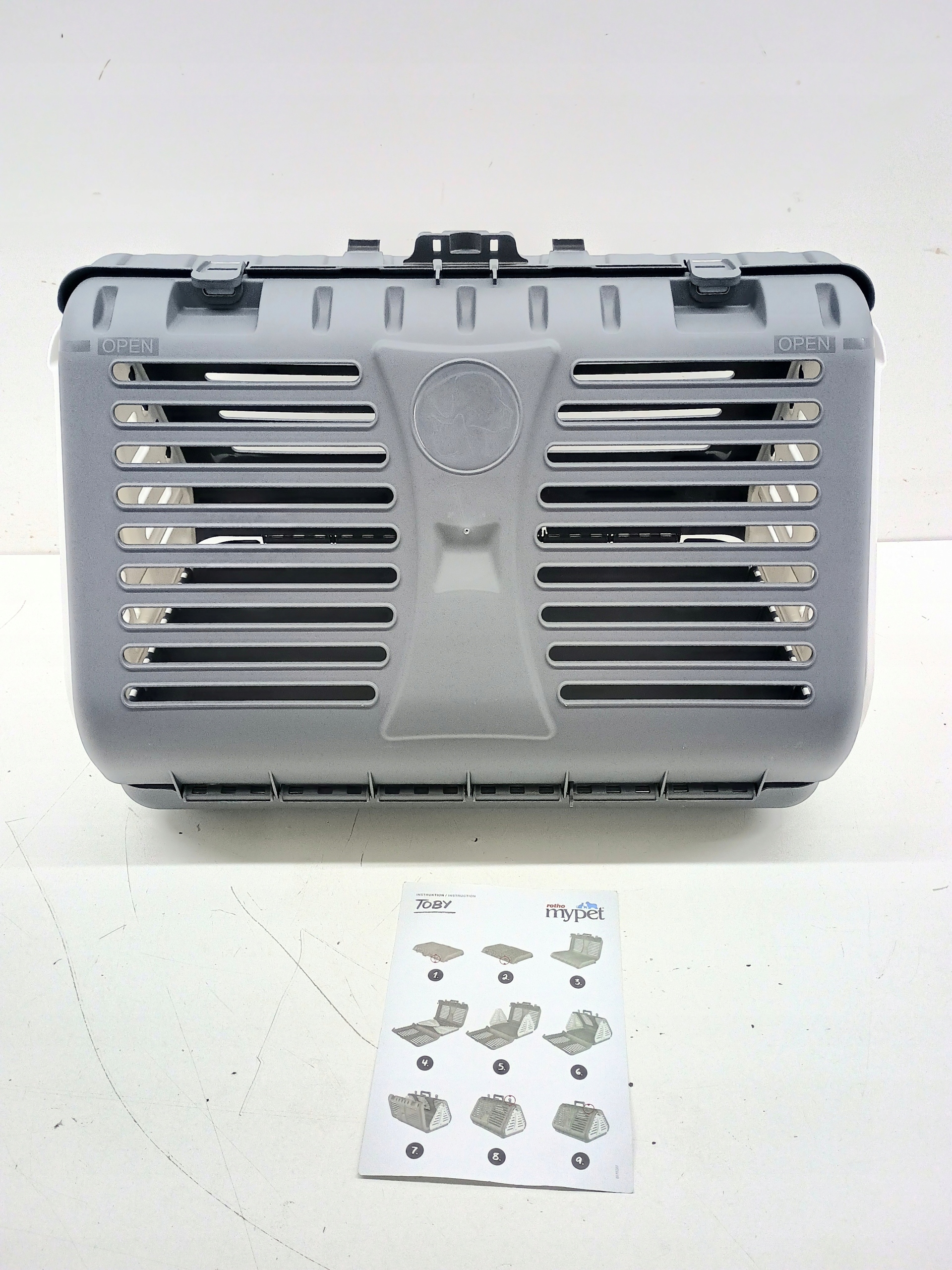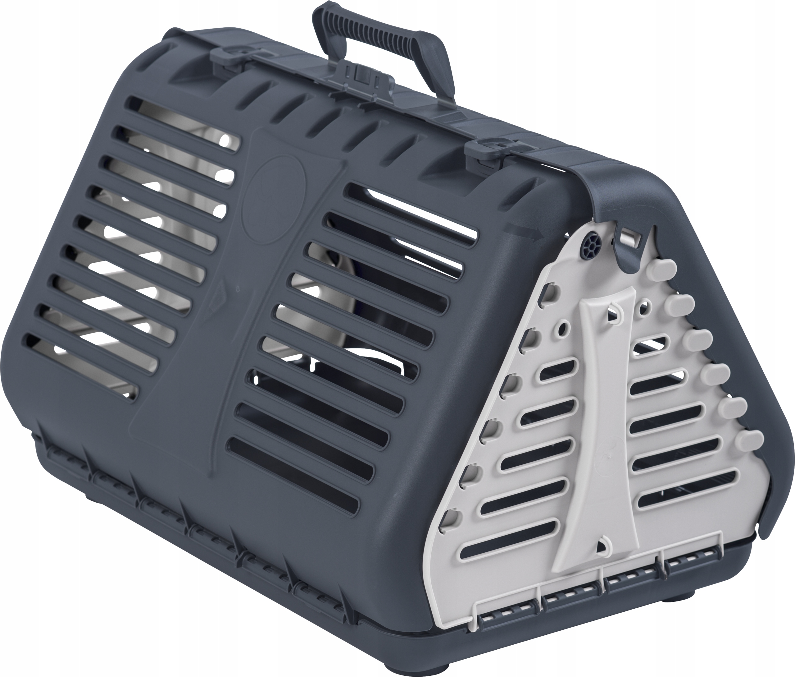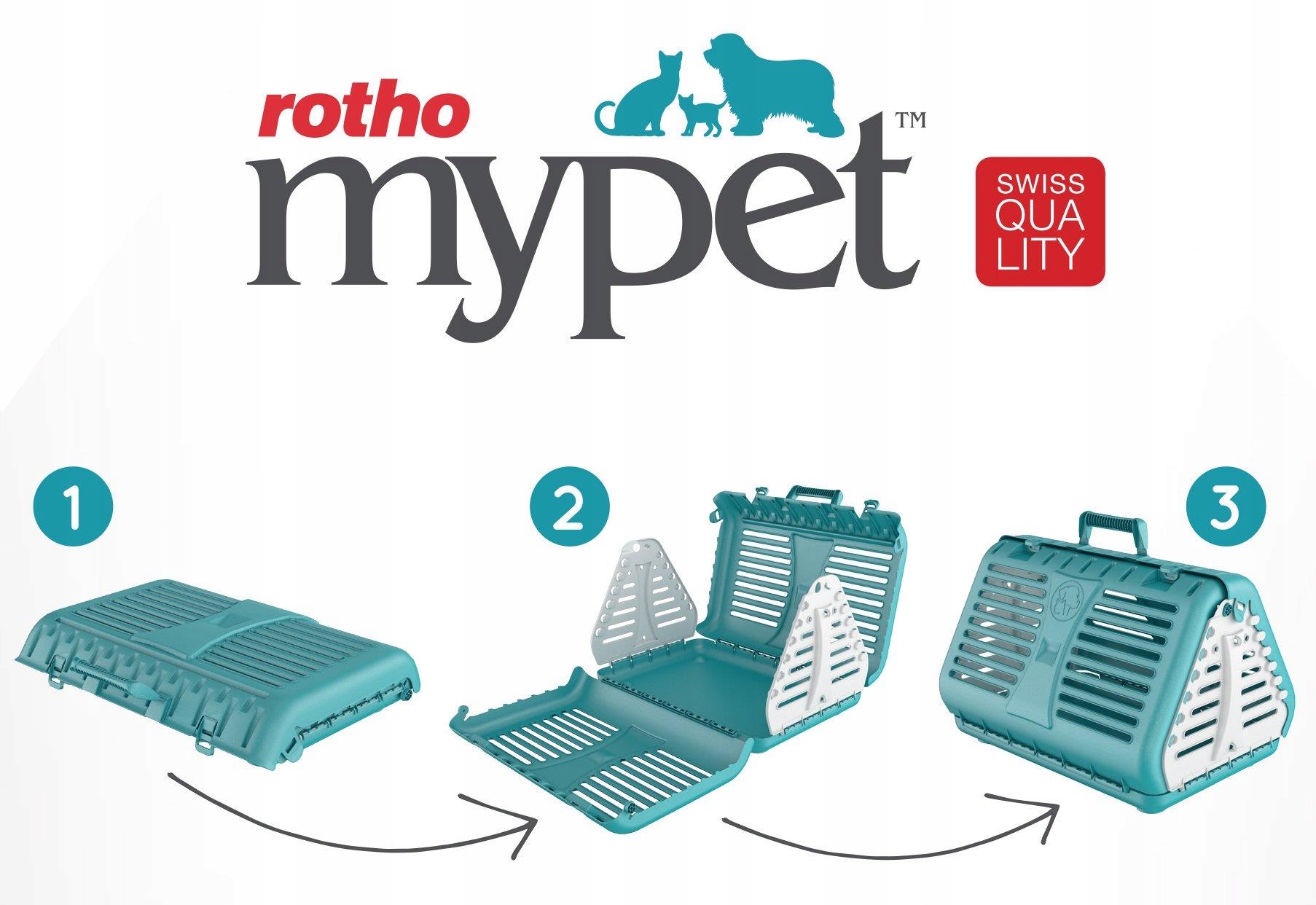Praktyczny i estetyczny składany transporter dla kota firmy Rotho. Jego obudowa z bocznym otwarciem zapewnia pupilowi stały dopływ światła oraz powietrza. Transporter posiada praktyczny uchwyt do przenoszenia, a jego dno pozbawione jest otworów, co zapobiega wydostawaniu się ewentualnych nieczystości. Dodatkowo transporter został wyposażony w kółka oraz w uchwyt, do którego można przyczepić sznurek lub smycz w celu ciągnięcia transportera, jeżeli jego przenoszenie jest uciążliwe. Składana konstrukcja ułatwi przechowywanie transportera gdy nie jest używany. Opakowanie zawiera instruktaż jak w łatwy sposób złożyć transporter. Maksymalny udźwig przedstawionego produktu to 10 kg.
