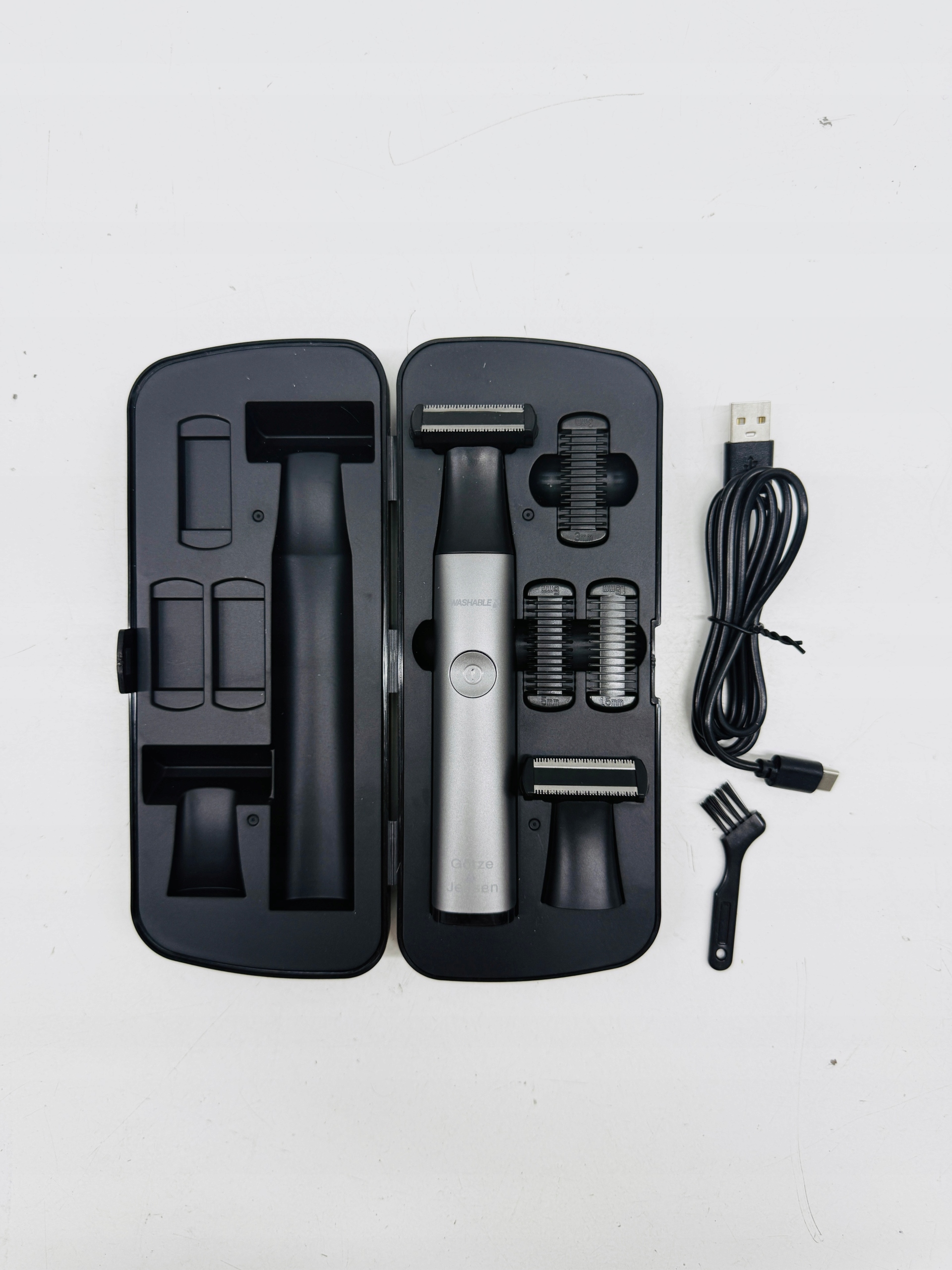 Trymer GÖTZE & JENSEN TR750 ma także wodoodporną konstrukcję umożliwiającą golenie na sucho i mokro, a nawet używane np. pod prysznicem. Do tego możliwe jest mycie głowicy pod bieżącą wodą, więc utrzymanie jej w czystości będzie naprawdę proste. Czyszczenie ułatwia także dołączona szczoteczka.