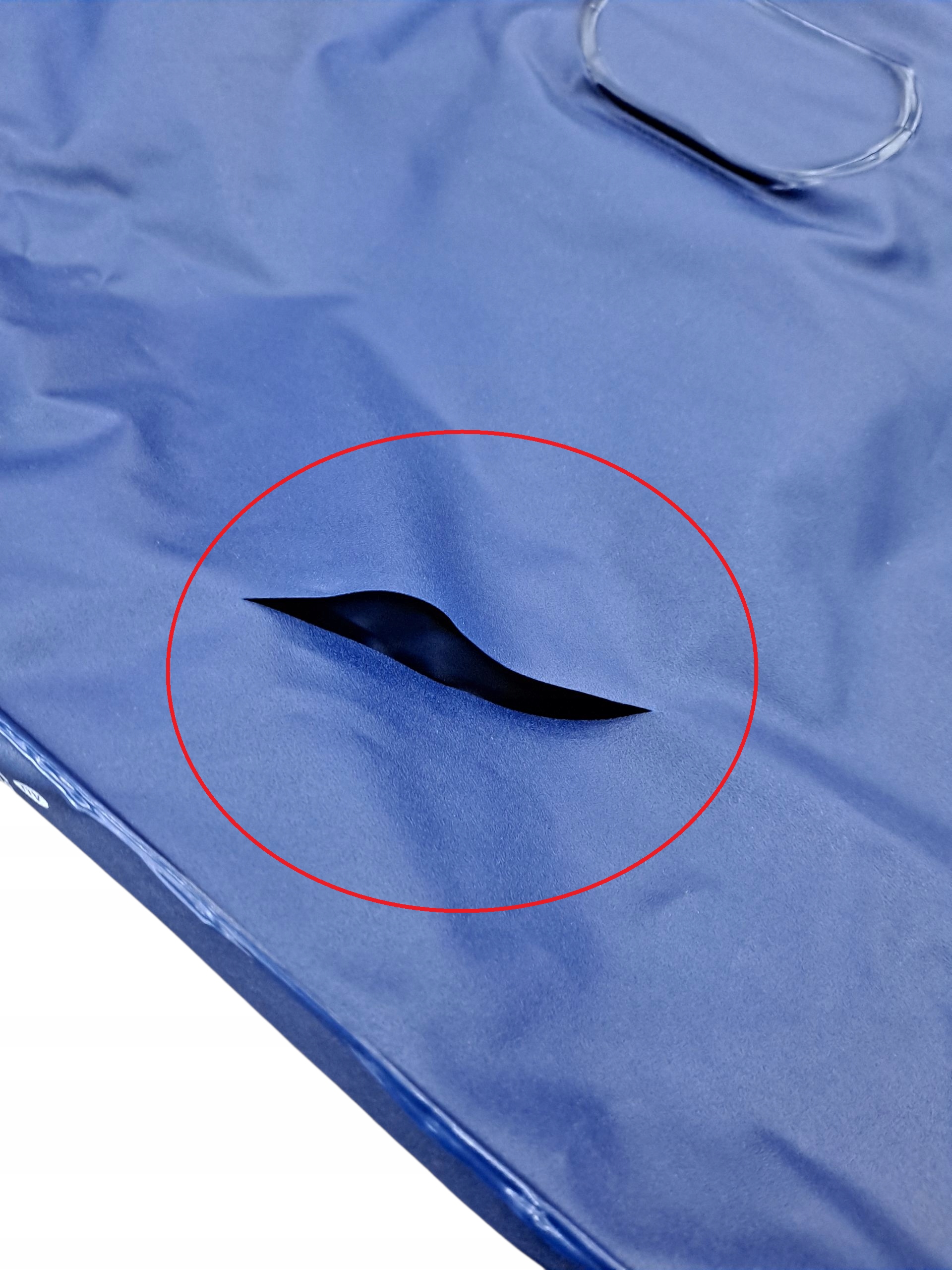 STAN TOWARU: USZKODZONY, UŻYWANY, POSIADA DZIURY W PRZEDNIEJ CZĘŚCI MATERACA ORAZ NA SPODZIE (zaznaczone na zdjęciu poniżej), ZESTAW ZAWIERA JEDYNIE MATERAC, OPAKOWANIE ZASTĘPCZE.
