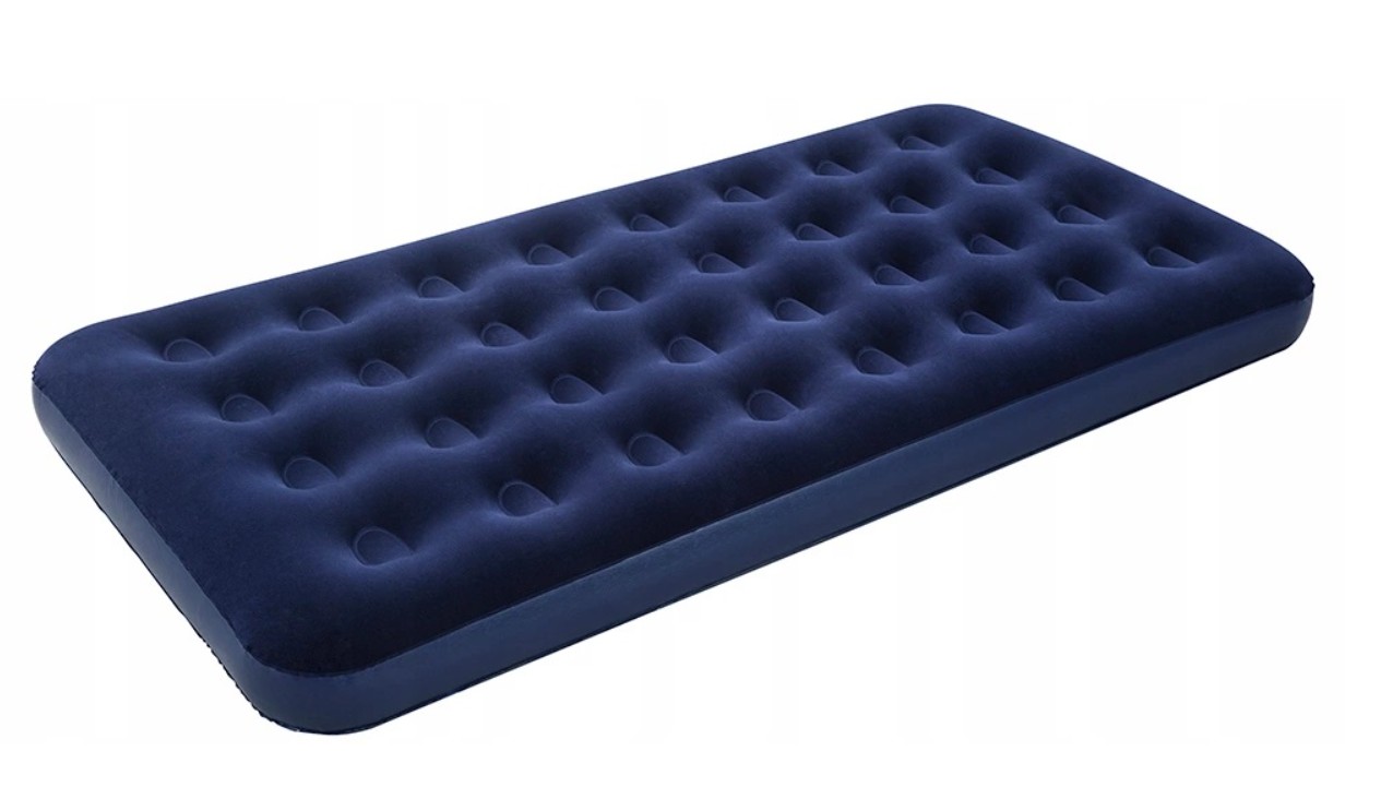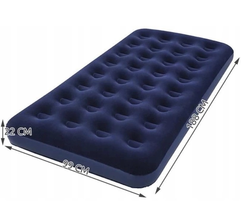Gdyby jednak pojawiło się jakieś uszkodzenie, nie musisz żegnać się ze swoim ulubionym materacem – naprawisz go przy pomocy dołączonej łatki naprawczej. By zwiększyć komfort korzystania z produktu, pokryto go miękkim welurem. Ciemnogranatowy kolor będzie pasował do każdego wnętrza.