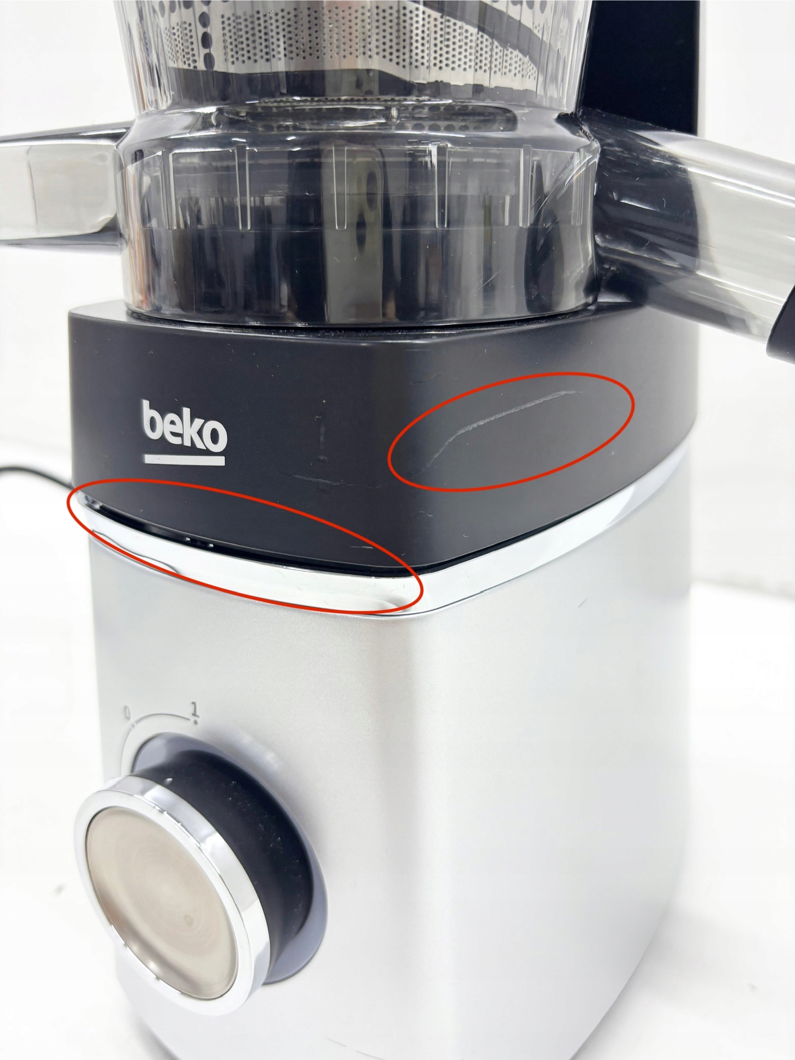 STAN TOWARU: USZKODZONY-WYŁAMANE ZACZEPY (WIDOCZNE NA ZDJĘCIU), DOKŁADNIE SPRAWDZONY PRZEZ AUTORYZOWANY SERWIS, STAN TECHNICZNY I WIZUALNY BARDZO DOBRY, URZĄDZENIE POSIADA ŚLADY UŻYTKOWANIA W POSTACI RYS, PRZETARĆ I PRZEBARWIEŃ(widoczne na zdjęciach), W ZESTAWIE BRAKUJE SZCZOTECZKI DO CZYSZCZENIA ORAZ DRUGIEGO POJEMNIKA ,PIERWSZY POJEMNIK POSIADA UŁAMANĄ RĄCZKĘ, DOKŁADNY STAN TOWARU ORAZ JEGO WYPOSAŻENIE ZOSTAŁ UKAZANY NA REALNYCH ZDJĘCIACH NASZEJ AUKCJI,BRAK INSTRUKCJI OBSŁUGI , OPAKOWANIE ZASTĘPCZE.
