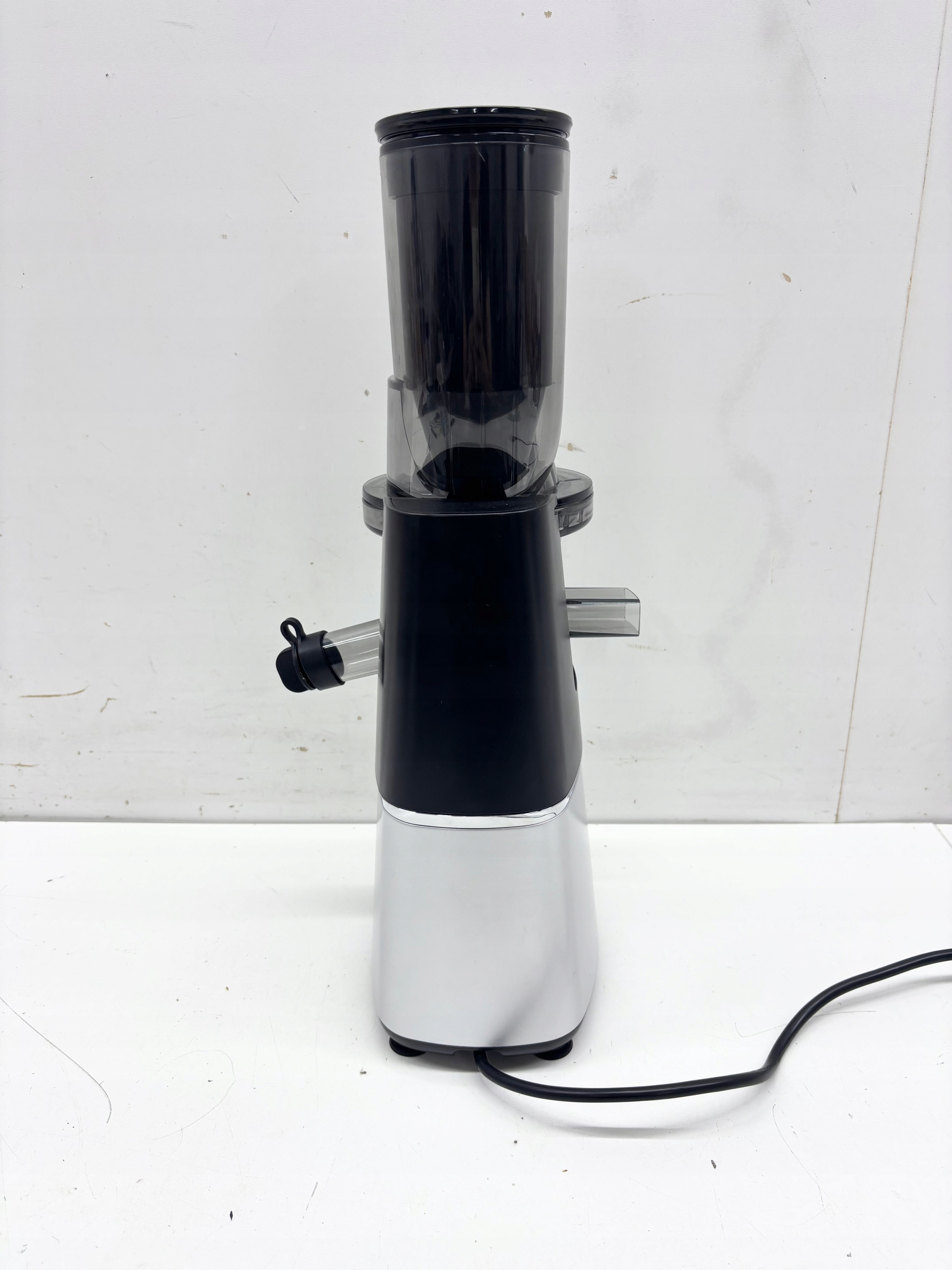 Zapobiega kapaniu soku z odpływu na stół lub blat oraz umożliwia wstrzymanie wypływu soku w każdym momencie pracy.