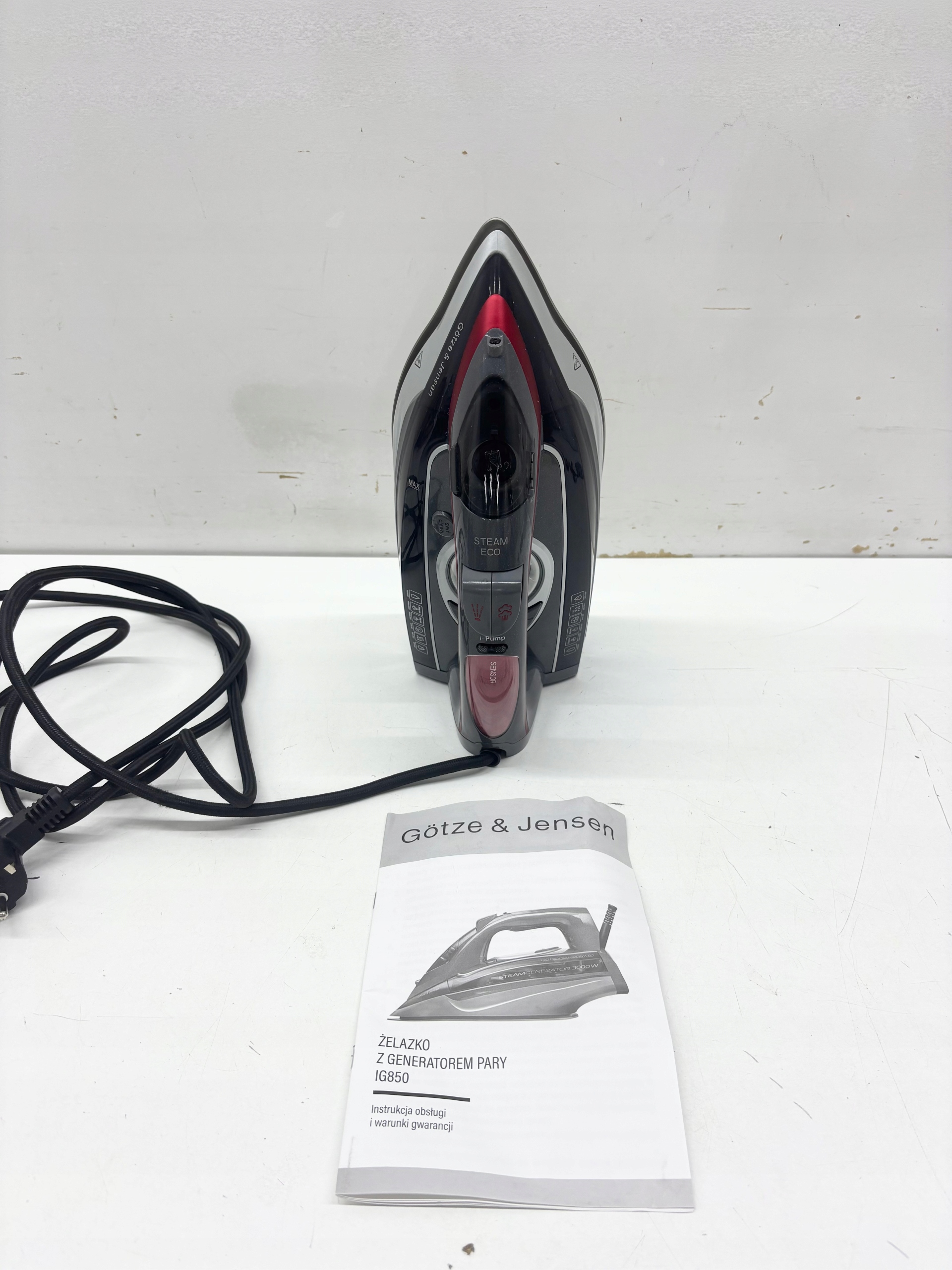 Żelazko GÖTZE & JENSEN IG850 z wbudowanym generatorem pary i o wysokiej mocy 3000 W sprawi, że prasowanie stanie się przyjemniejsze. Zastosowana w nim technologia Burst Steam dzięki wbudowanej pompie zapewnia imponujące uderzenie pary o sile 200g/min lub ciągły wyrzut pary do 60g/min, która przenika przez powierzchnię tkaniny, eliminując nawet najbardziej uporczywe zagniecenia.