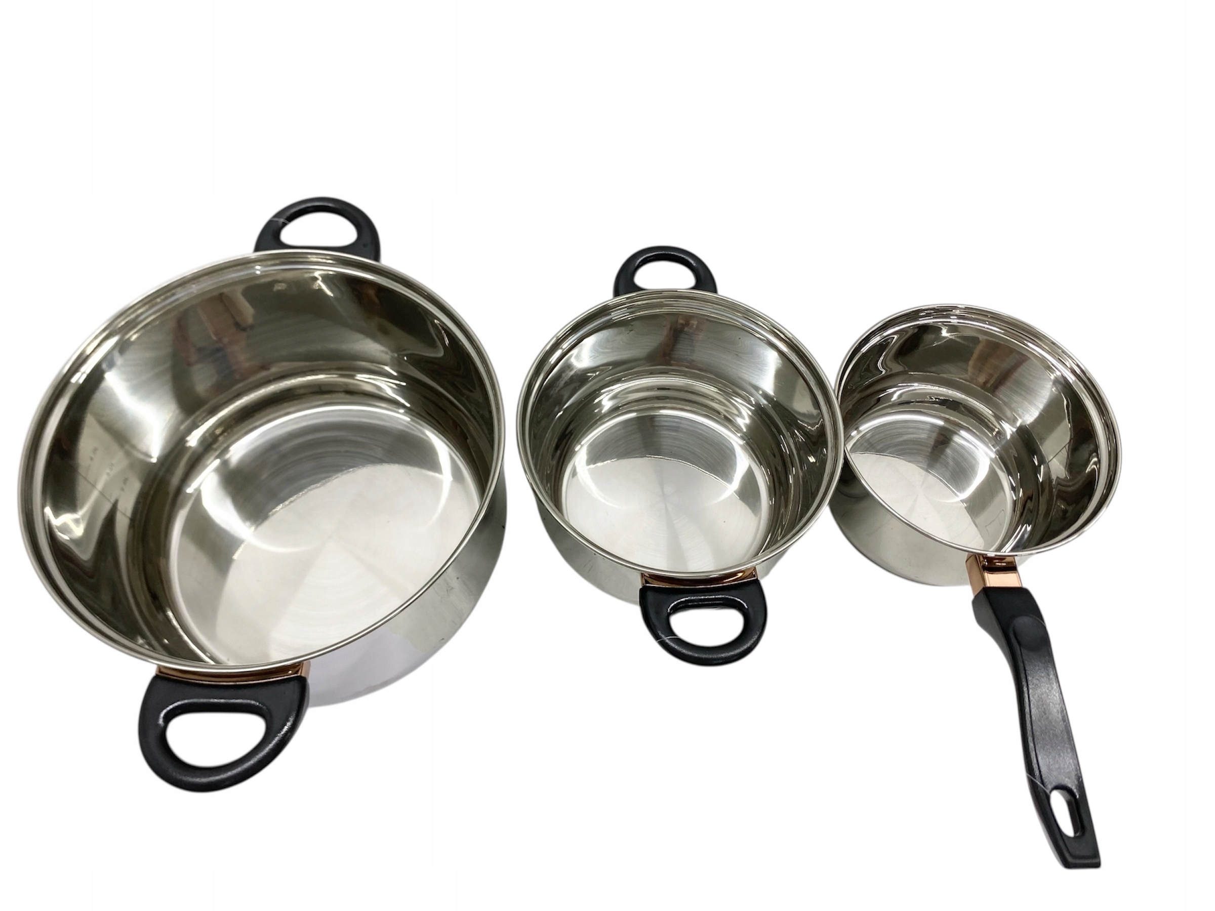 STAN TOWARU: POWYSTAWOWY, ZESTAW ZAWIERA 2 GARNKI ORAZ RONDEL WRAZ Z POKRYWKAMI, BRAKUJE PATELNI ORAZ DWÓCH GARNKÓW, OPAKOWANIE ORYGINAKNE ZE ŚLADAMI MAGAZYNOWANIA.